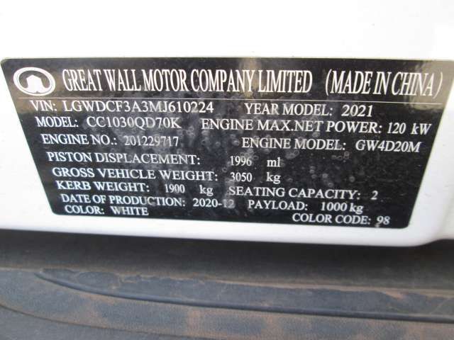 GWM , P – SERIES 2 . 0 TDI SX 4 X 4 S / C P / U , WHITE , 2021 ( 29072 )