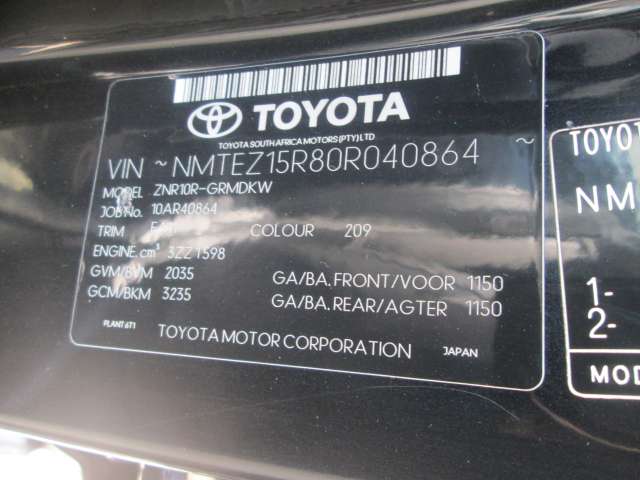 TOYOTA , COROLLA VERSO , BLACK , 2009 ( 27448 )