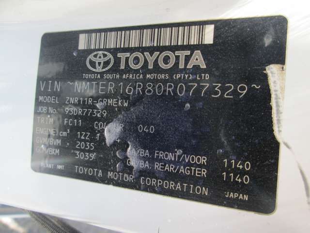 TOYOTA , VERSO 180 TX , WHITE , 2006 ( 24169 )